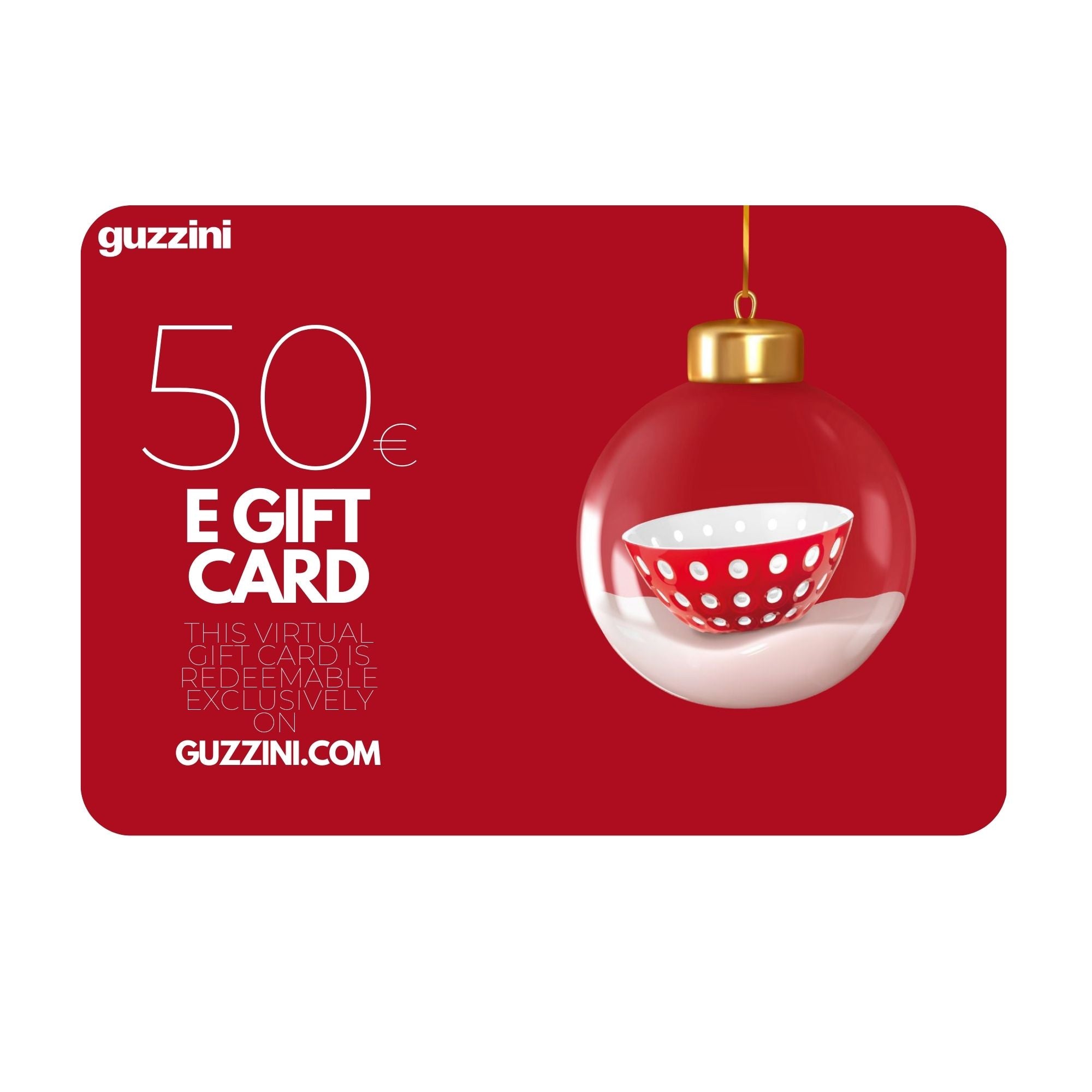 Die E-Geschenkkarte von Guzzini ist nur auf unsere Website gültig, und den Einkauf der Karte hat keine Versandkosten.