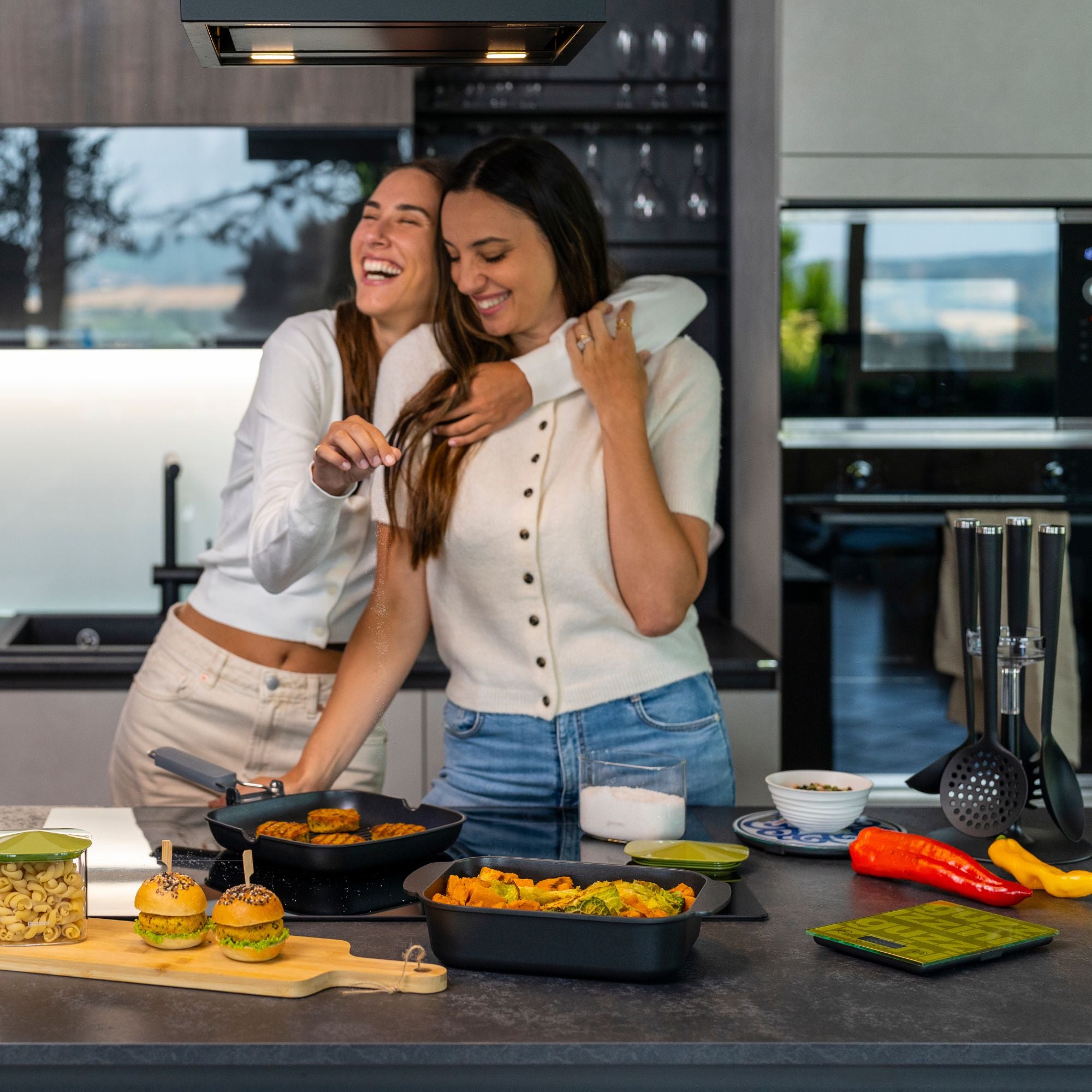 - Le maniglie integrate nella struttura offrono una presa sicura, mentre il design impilabile, disponibile in tre formati (25x20 cm, 30x22 cm e 35x24 cm), consente di ottimizzare lo spazio in cucina.