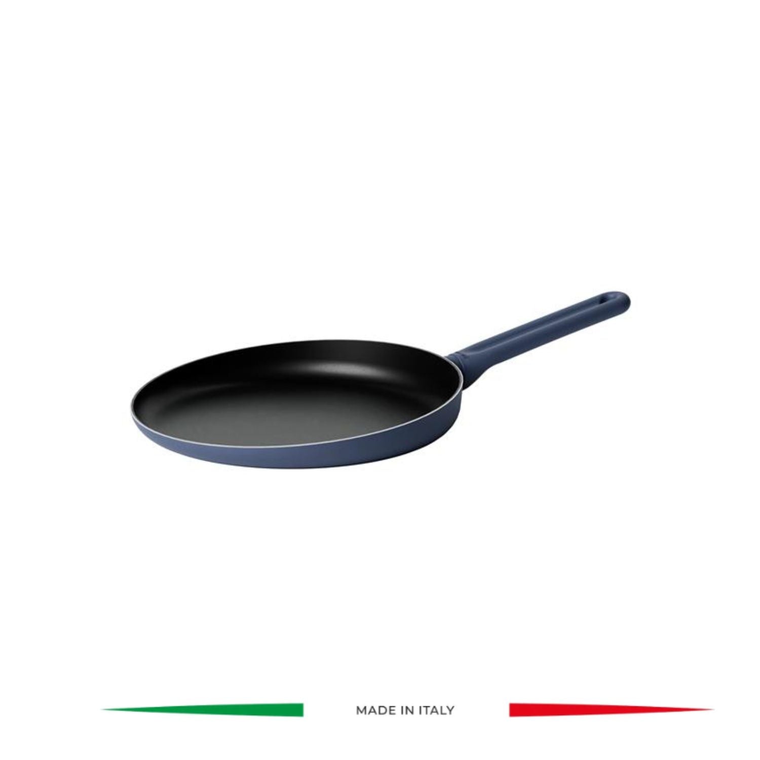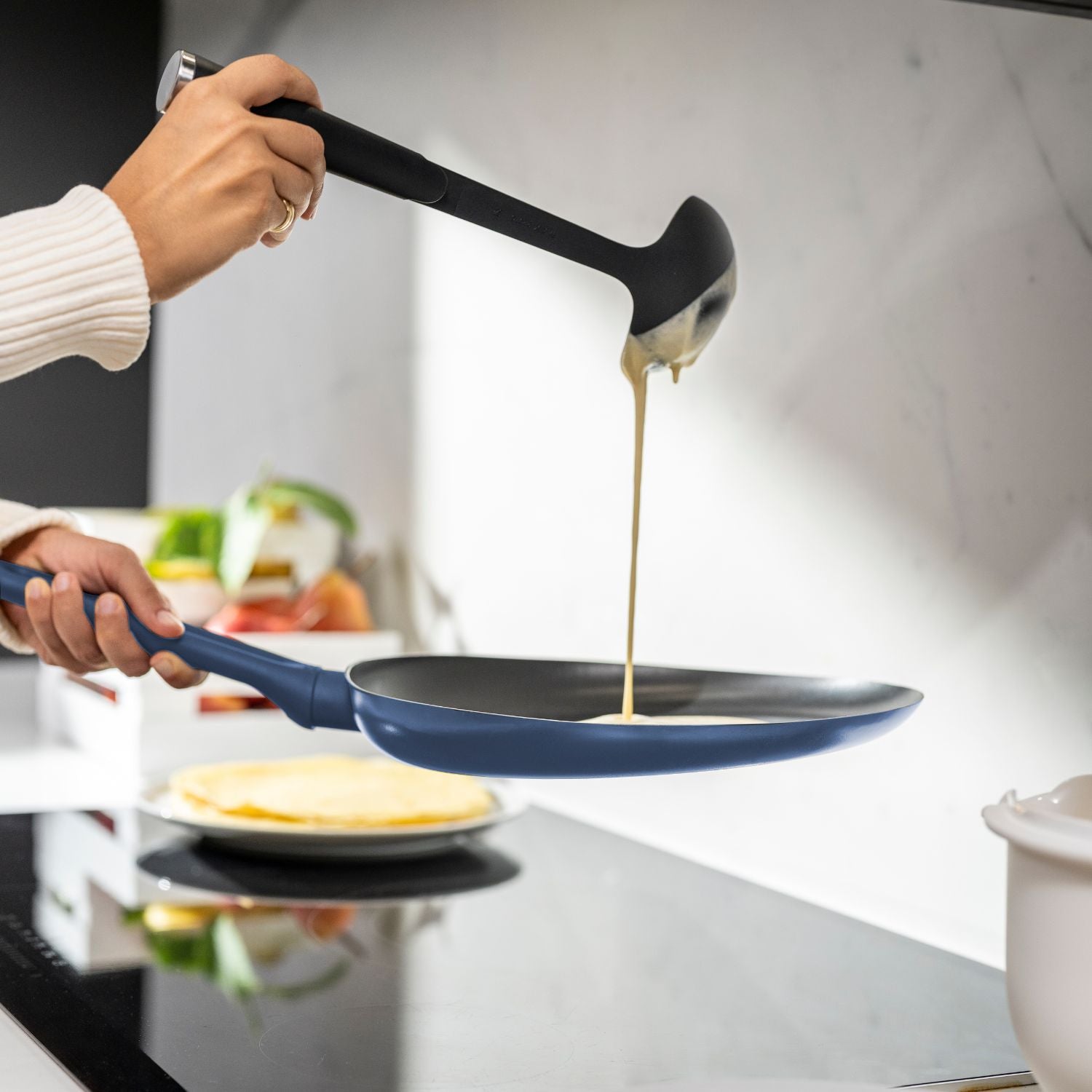 The stylish, practical pancake pan is designed with a distinctive asymmetrical edge. The higher edge on the handle side ensures a convenient, firm grip, while the side with a lower edge makes it easy to turn your pancake with a spatula. Ideal for making pancakes, piadina and omelettes.