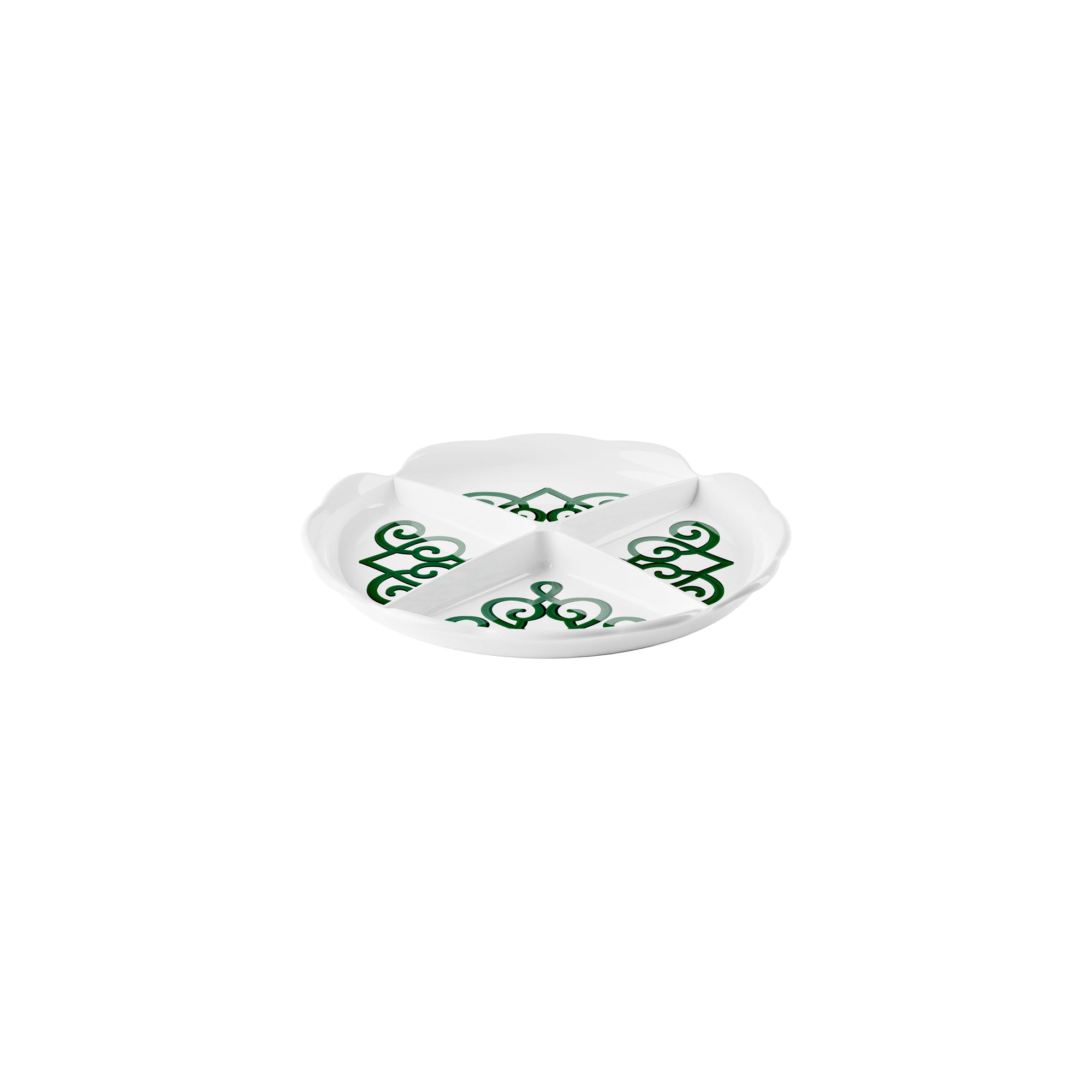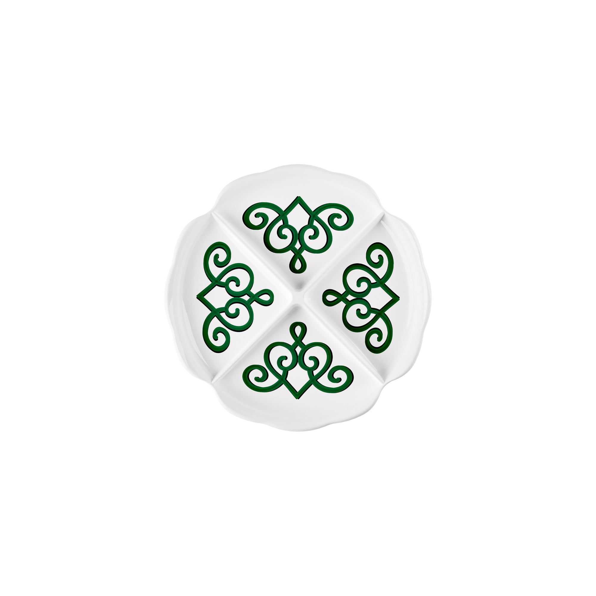 - ELEGANT DESIGN: Melamine appetizer tray with four separate compartments, ideal for serving appetizers and snacks in style